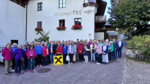 Am 16. Oktober 2025 führte uns unser heuriger „Törggele-Ausflug“ zum Griesserhof in Vahrn. Ein Törggelemenü wird ausgiebig, daher machte ein Teil der Gruppe mit Helena eine Wanderung von Brixen entlang des Eisack zum Kloster Neustift und traf dort auf die Gruppe, die eine Besichtigung des Klosters machten. Der Weg von dort zum Griesserhof war kurz und bald wurde in den Stuben mit dem Auftragen der Köstlichkeiten des Törggele-Menüs begleitet von Wein und Apfelsaft begonnen. Den Spinatkrapfen folgte die Gerstlsuppe, Schlutzkrapfen und die Schlachtplatte. Süße Krapfen und Kastanien schlossen das Menü ab, das in ausgezeichneter Stimmung genossen wurde. Bei der Heimfahrt durch das Pustertal leuchtete Südtirol in den schönsten Herbstfarben.