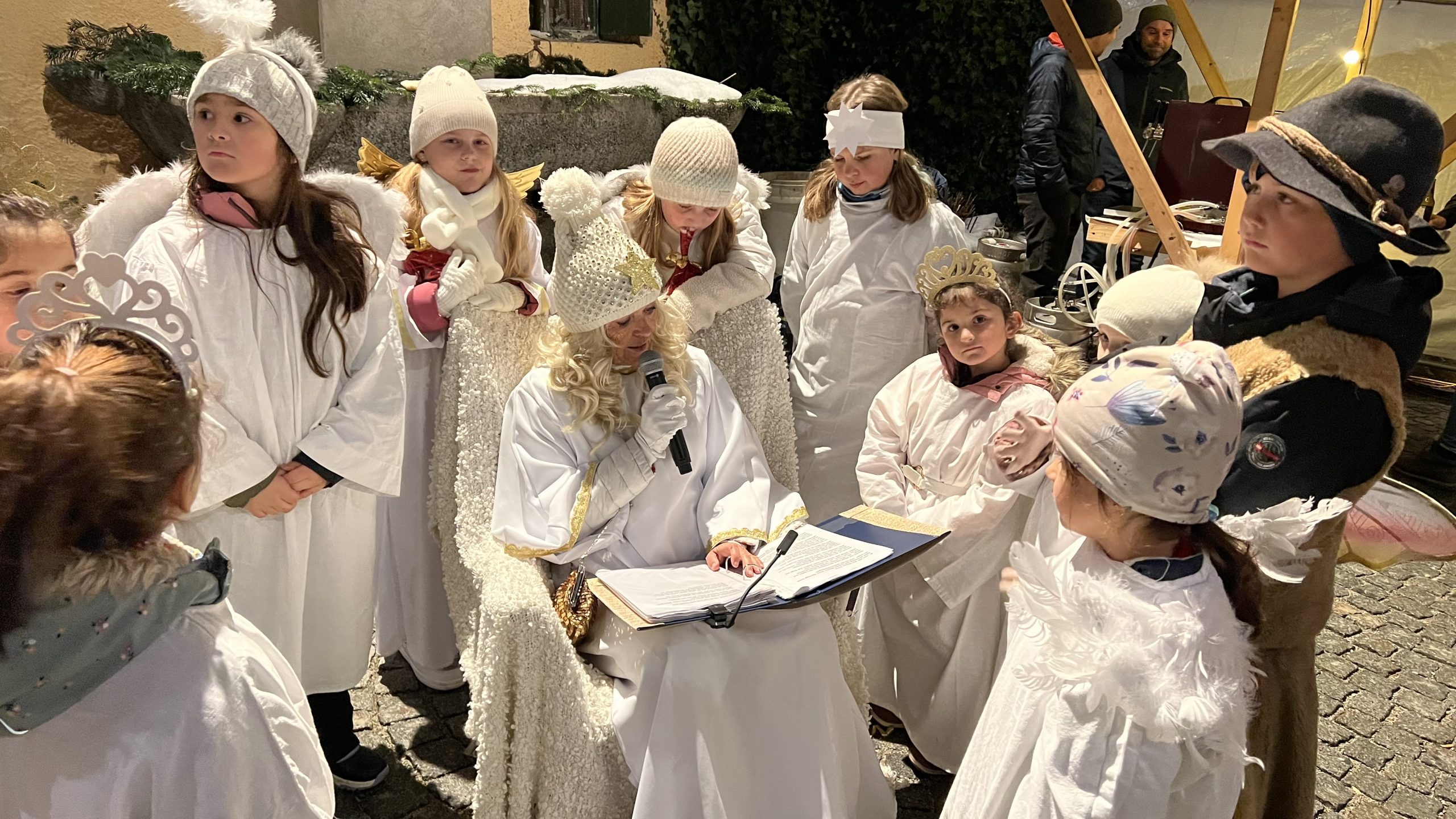 Einige hundert Kinder kamen und freuten sich über den Besuch des Nikolaus. Für die Kinder gab es Kinderpunsch und für die Erwachsenen gab es wieder weißen Glühwein, Brezen und und die Fleischkäs‘ Jause.