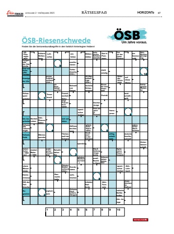 ausgabe 2 %u00b7 fr%u00fchjahr 2025 67%u00d6SB-Riesenschwede1234 56789101 2 3 4 5 6 7 8 9 10USFilmregisseurHeiligenbildder OstkircheKind vonSohnoderTochterAnzeigeder UhrSchauspielsch%u00fclerfair, begr%u00fcndetRufnamedesTrainersVogtsReferat,Rede%u00f6sterr.Autor%u2020 1966(von ...)obereMauerleisteSiamochineseGift derTollkirscheWortteil:Lebenniederl.Maler%u2020 1685fr%u00fchereBrillenformAbk.:RhesusfaktorW%u00e4rmespenderLuftreifeneurop.Fu%u00dfballverband(Abk.)TreuebrucharabischerF%u00fcrstentitelenglisch:seineinZweikampfsportlerRehabilitationKw.BaumarktketteFremdwortteil:Zehnengl.FrauenkurznameFl%u00e4chenma%u00df derSchweiz%u00d6llieferl%u00e4nderverbund(Abk.)einfettenpositionierenTurbodieselinj.(Abk.)MehrzahlvonDatumAbflussdes AtterseesHundenamesehr,h%u00f6chstRufnameDeutschers(S%u00e4nger)spanischerArtikelspendengehoben:d%u00f6rflich(auf dem...)Bl%u00fctenbl%u00e4tterUS-BasketballLiga(Abk.)deutscheSchauspieleringl%u00fccklicheNaturn%u00e4heGru%u00dfwortin derSchweizInitialenRedfordsasiatischeSchwertk%u00e4mpferfrecherJungeForm von%u201asein%u2018(2.Person)Kfz-Z.SalzburgUmgebungwestl.Bezirkin Stmk.See inPommernstarkwindigStromder nord.UnterweltPortr%u00e4tfr%u00fcherer%u00f6sterr.AdelstitelAbk.:Fernnetzfranz.:jeneseifrig,arbeitsamOrtan derfranz.RivieraRitterderArtussageSpitznameEisenhowersspanischerArtikelindischeB%u00fcffelbutterAbk.: AnlageaufdieseWeiselandschaftl.:gelbdeutscheVorsilbe:schnellAbk.:Lehrbuchchem.Zeichenf%u00fcrGalliumeinSommercaf%u00e9m%u00e4nnlicherNachkommeAbk.:Nichtregierungsorg.Schlagerstar(Roberto)Hinterlassenschaftsich entfaltenZugewinnFinden Sie die Seniorenbundbegriffe in den farblich hinterlegten Feldern!r%u00e4tselspa%u00df