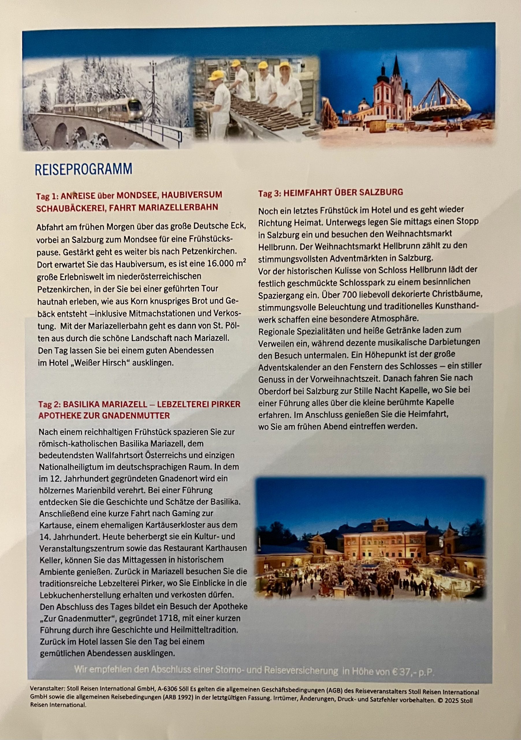 25. bis 27.11.2025 Adventfahrt nach Mariazell